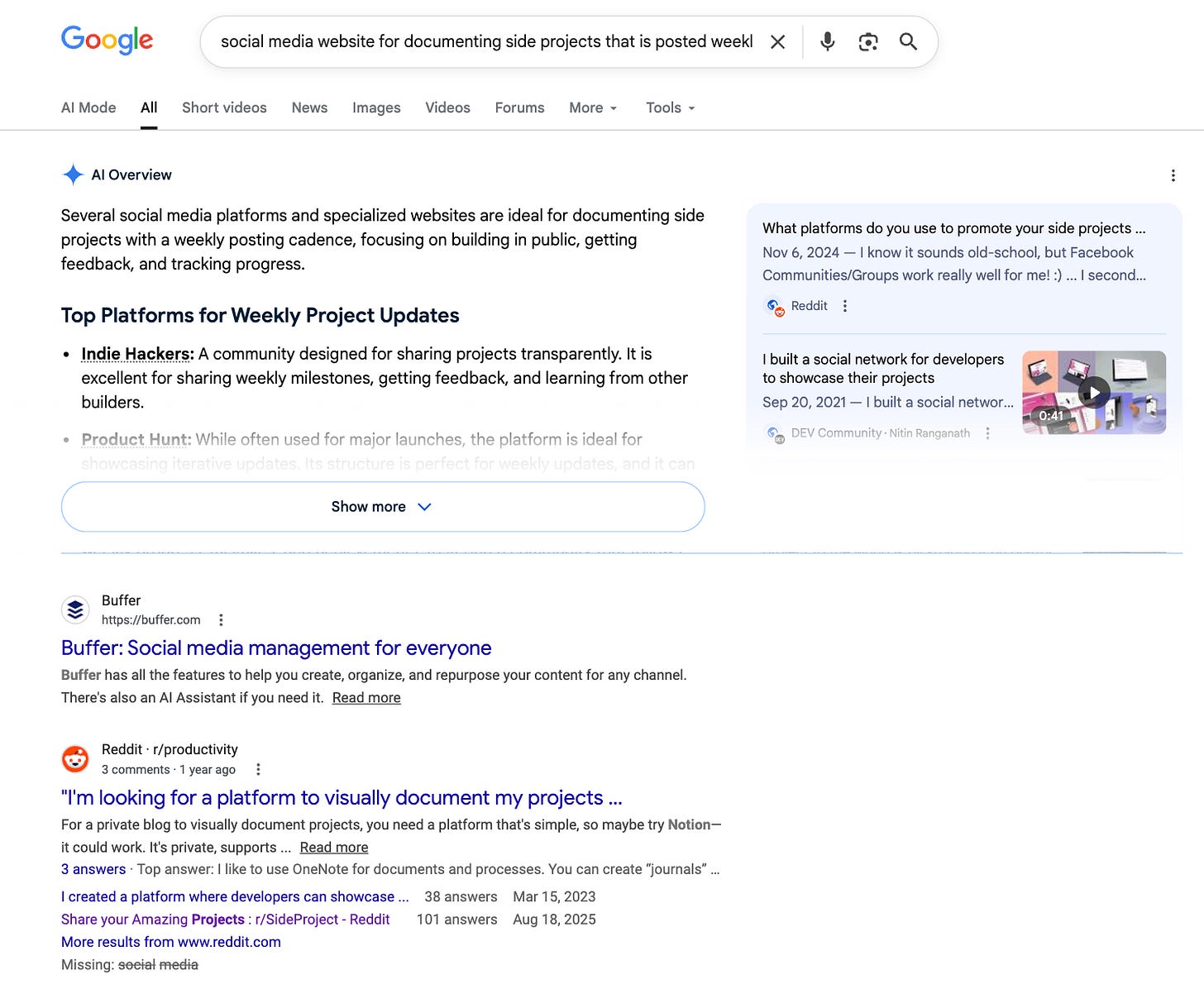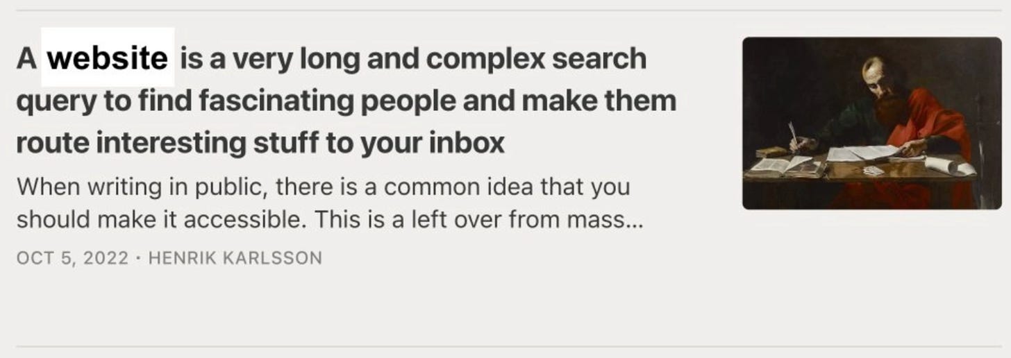 One of the interesting parts of micro-communities is how they are found. In the past Google was the great highway of the internet - there’s an infamous story of how Amazon was named that because the search ranking used to be in alphabetical order. Now search algorithms aren’t as simple and if someone were to find inprogress.works on Google I would have to play the Great Game of SEO (whatever that is).